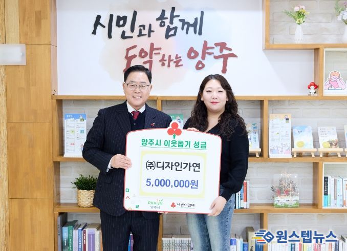 원스텝뉴스 이병희 기자 | ㈜디자인가연이 12일 시장실에서 새해를 맞아 이웃돕기 성금 500만 원을 양주시에 기탁했다.