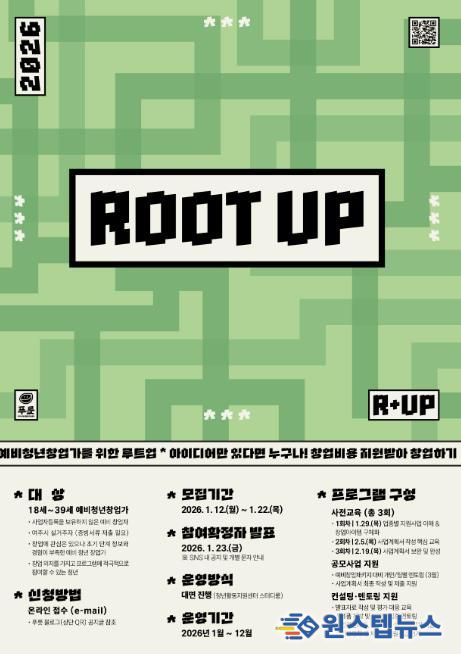 '루트업(Root Up)'은 정보 및 경험 부족이나 네트워크 한계 등으로 창업에 어려움을 겪는 예비 청년 창업가를 대상으로 창업 기초 역량강화 및 성장 지원을 목적으로 기획됐다. 참여를 원하는 청년은 1월부터 시작하는 사전교육(총 3회차/정부 및 기관 지원사업 소개, 사업계획서 작성요령, 사업계획서 작성 및 보완) 참여 후, 정부지원사업 공모에 따른 멘토링 및 교육 등을 제공 받을 수 있다.