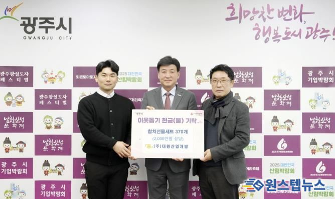 원스텝뉴스 이병희 기자 | ㈜대원산업개발 이근배 대표와 에이지이앤씨 주식회사 이귀행 대표는 지난 12일 지역 내 어려운 이웃을 돕기 위해 참치선물세트 370개(2천만 원 상당)를 광주시에 기탁했다.