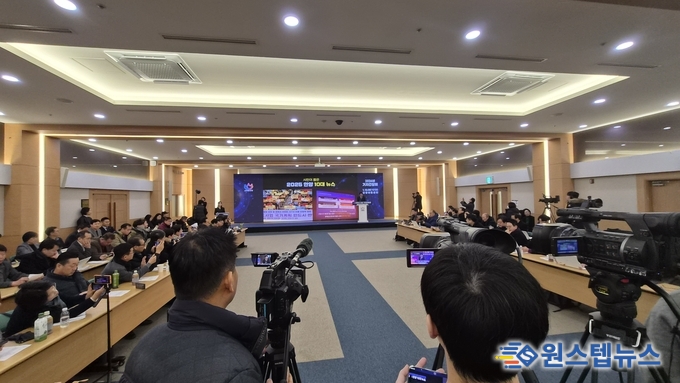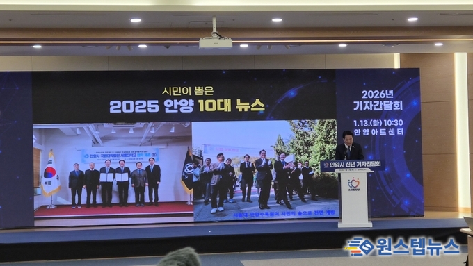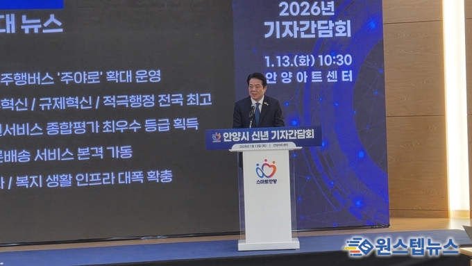 최대호 안양시장이 13일 오전 10시 30분 안양아트센터에서 ‘2026년 신년 기자간담회’를 열고, 인공지능(AI) 시대 전환에 대응한 도시 경쟁력 강화와 시민 중심의 시정 운영 방향을 발표했다.