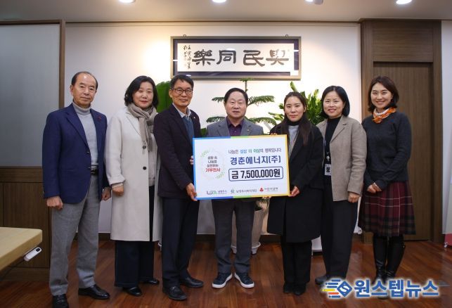 원스텝뉴스 이병희 기자 | 남양주시는 13일 (주)경춘에너지(대표 전인권)가 지역 내 취약계층 지원을 위해 후원금 750만 원을 동부희망케어센터(센터장 신영미)와 수동면 지역사회보장협의체(위원장 박경숙)에 전달했다.