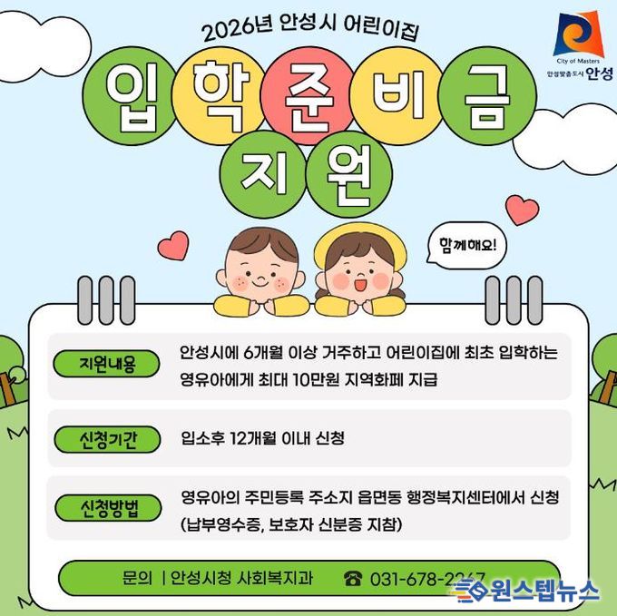 원스텝뉴스 이병희 기자 | 안성시는 2026년부터 어린이집 입학준비금 지원사업을 시행한다고 밝혔다.