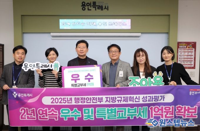 원스텝뉴스 이병희 기자 | 용인특례시는 지난해에 이어 ‘지방규제혁신 성과평가’에서 우수 기관으로 선정돼 특별교부세 1억 원을 확보했다고 16일 밝혔다.