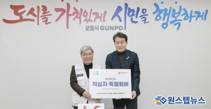 원스텝뉴스 이병희 기자 | 군포시는 16일 2026년도 적십자 특별회비 100만원을 대한적십자사 경기도지사에 전달하며 새해 따뜻한 나눔의 시작을 알렸다.