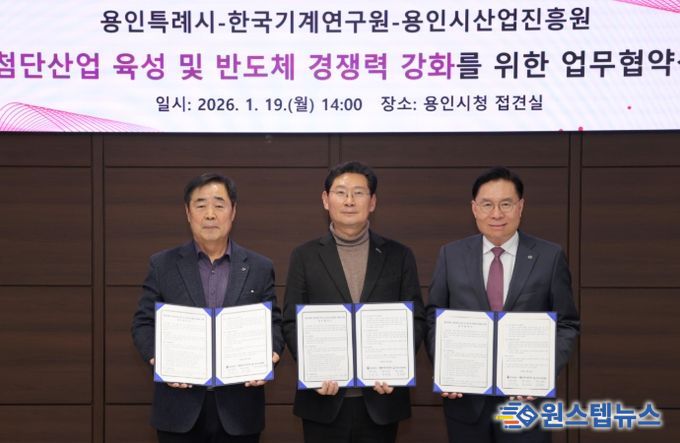 원스텝뉴스 이병희 기자 | 용인특례시는 19일 시청 접견실에서 한국기계연구원(KIMM), 용인시산업진흥원과 ‘첨단산업 육성 및 반도체 경쟁력 강화를 위한 업무협약’을 체결했다.