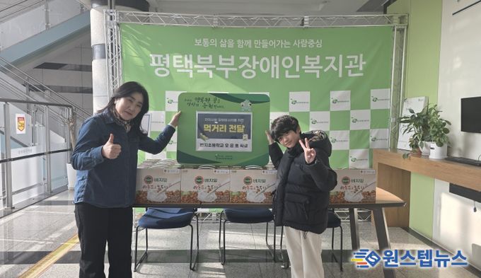 원스텝뉴스 이병희 기자 | 평택북부장애인복지관은 1월 16일 14시, 이충동 반지초등학교 오윤호 학생으로부터 먹거리(두유 20박스)를 후원받았다.