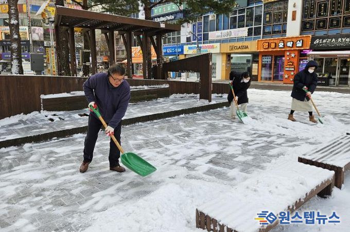 원스텝뉴스 이병희 기자 | 지난 1월 18일 밤 내린 눈으로 인한 안전사고 예방을 위해 영통3동 행정복지센터는 1월 19일, 관내 주요 보행로와 취약 구간을 대상으로 제설작업을 실시했다.