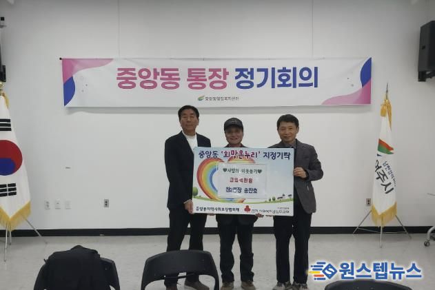원스텝뉴스 이병희 기자 | 새해를 맞아 지난 19일 송찬호 창2통장이 중앙동행정복지센터에 성금 100만원을 기탁하며 변함없는 이웃사랑을 실천했다.