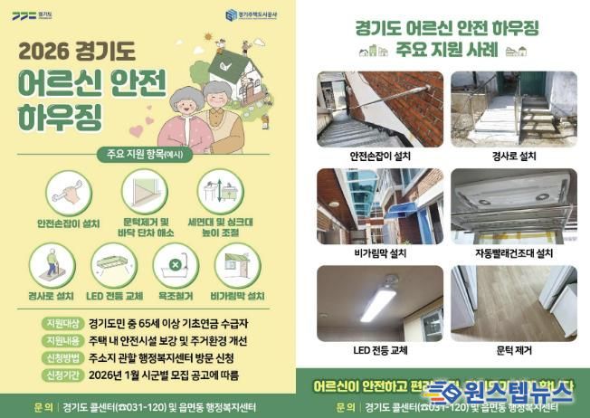 ‘어르신안전하우징’ 사업은 만 65세 이상 기초연금 수급자를 대상으로, 고령자의 주거 안전성 강화를 위해 가구당 최대 500만 원 이내에서 지원한다. 주요 지원 항목은 문턱 낮춤, 미끄럼 방지 바닥재 시공, 경사로 및 안전손잡이 설치 등이다.