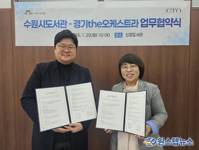 원스텝뉴스 이병희 기자 | 수원시도서관은 경기더(the)오케스트라는 20일 수원시 도서관사업소에서 업무협약을 체결하고, 공공도서관을 중심으로 한 시민 참여형 문화예술 프로그램 운영에 협력하기로 했다.