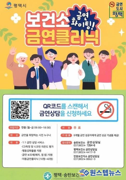 원스텝뉴스 이병희 기자 | 평택시는 금연을 희망하는 시민들이 금연클리닉 정보무늬(QR코드)를 통해 편리하게 금연 상담 서비스를 이용할 수 있도록 금연클리닉을 운영하고 있다.