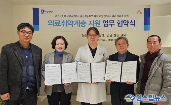 원스텝뉴스 이병희 기자 | 수원시 권선구 권선2동행정복지센터는 지난 20일, 권선2동 지역사회보장협의체, 우리의내과의원과 함께 지역 내 취약계층 의료복지향상 위한 업무협약을 체결했다고 밝혔다.