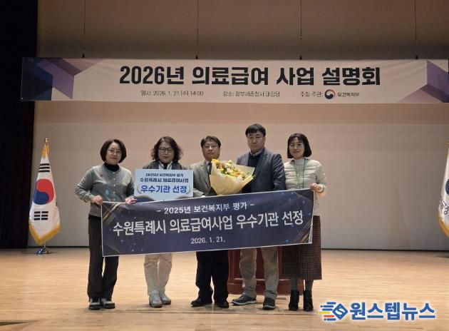원스텝뉴스 이병희 기자 | 수원특례시는 보건복지부가 주관한 ‘2025년 의료급여사업 평가’에서 우수 기관으로 선정돼 표창을 받았다. 시상식은 21일 정부세종청사 대강당에서 열린 ‘2026년 의료급여 사업 설명회’ 중 진행됐다.