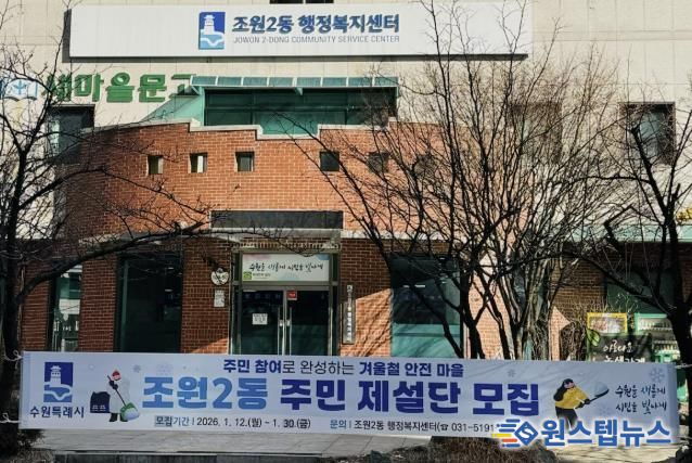 원스텝뉴스 이병희 기자 | 수원시 장안구 조원2동은 올겨울 강설 시 주민들의 자발적 참여를 중심으로 신속한 제설을 실시해 안전한 마을 조성을 도모하고, ‘내 집 앞 눈 치우기’ 문화를 확산하기 위해 '조원2동 주민 제설단'을 운영한다고 밝혔다.
