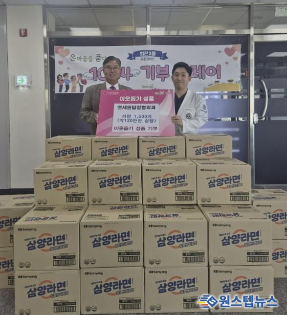 원스텝뉴스 이병희 기자 | 양주시 회천2동 연세원탑정형외과가 지난 21일 회천2동 행정복지센터에 라면 1,500개(약 120만 원 상당)를 기부했다.