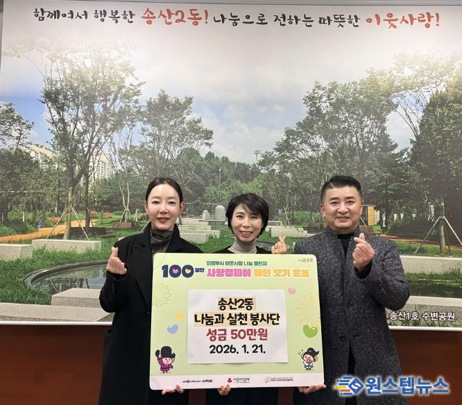원스텝뉴스 이병희 기자 | 의정부시 송산2동주민센터는 1월 21일 나눔과실천 봉사단이 성금 50만 원을 기탁했다고 밝혔다.