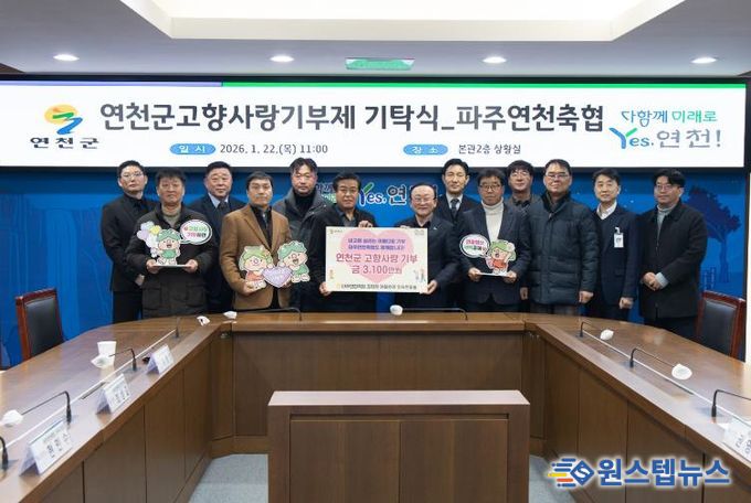 원스텝뉴스 이병희 기자 | 파주연천축협 임직원들이 뜻을 모아 지난해 연천군에 고향사랑기부금 총 3,100만 원을 기부했다.