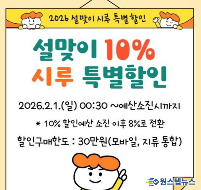 명절 특별할인은 다음 달 1일 0시 30분부터 시작되며, 개인별 월 구매 한도는 모바일ㆍ지류권을 통합해 30만 원이다. 특별할인 예산이 소진되면 할인율은 8%로 전환된다.