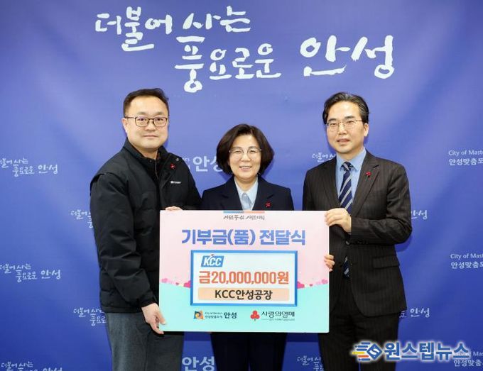 원스텝뉴스 이병희 기자 | 안성시는 1월 19일 KCC안성공장으로부터 기부금 2,000만 원을 전달받았다고 밝혔다.