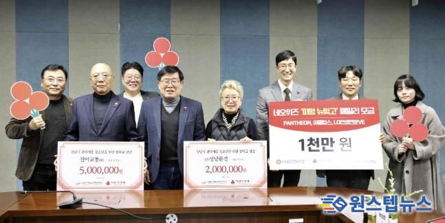 원스텝뉴스 이병희 기자 | 성남시청소년청년재단은 1월 23일 성남시 취약계층 청소년 장학금 지원을 위한 기업 기부금 전달식을 개최했다. 이번 전달식에는 ㈜네오위즈, 진아교통(주), ㈜성남환경 관내 기업 3곳이 참여해 총 1,800만 원의 장학금을 후원했다.