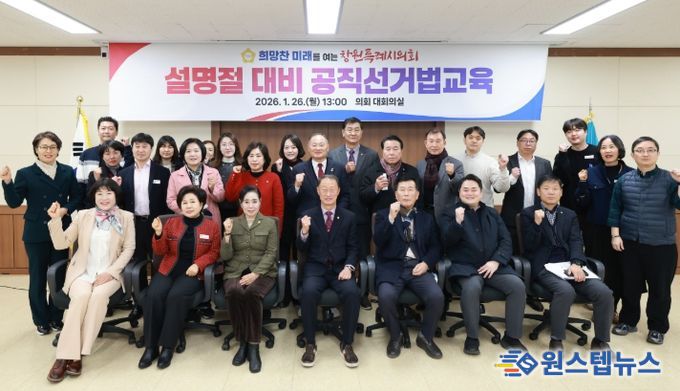 원스텝뉴스 이병희 기자 | 창원특례시의회는 다가오는 설 명절을 대비해 의원과 직원 100여 명을 대상으로 26일 공직선거법 교육을 진행했다.