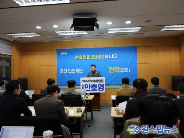 원스텝뉴스 이병희 기자 | 전북도지사 출마를 선언한 안호영 국회의원(국회 기후에너지환경노동위원장)은 26일 기자회견을 열고 “수년간 멈춰 서 있던 새만금 수상태양광 사업의 핵심 난제였던 전력망(계통) 연결 문제가 해결 국면에 들어섰다”며 “이를 계기로 전북이 첨단산업을 감당할 수 있는 실질적 전력 기반을 갖추게 됐다”고 밝혔다.