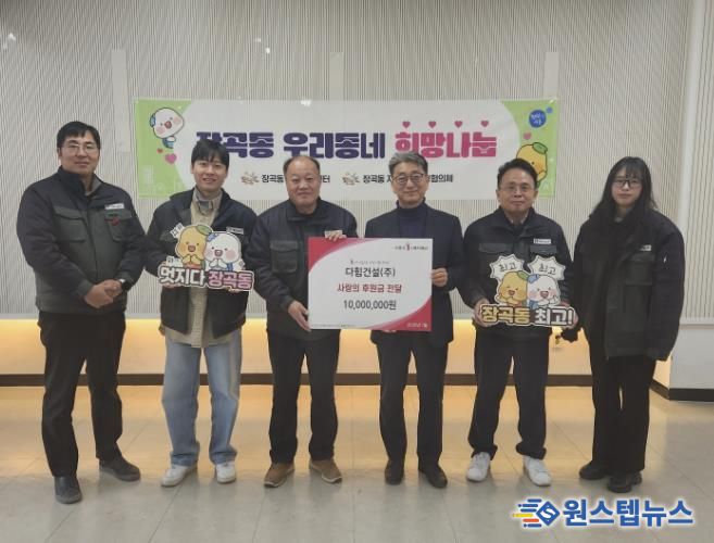 원스텝뉴스 이병희 기자 | 시흥시 장곡동 행정복지센터에 지난 1월 26일 다힘건설(주)이 방문해 지역 내 어려운 이웃을 돕기 위한 사랑의 후원금 1천만 원을 전달했다.
