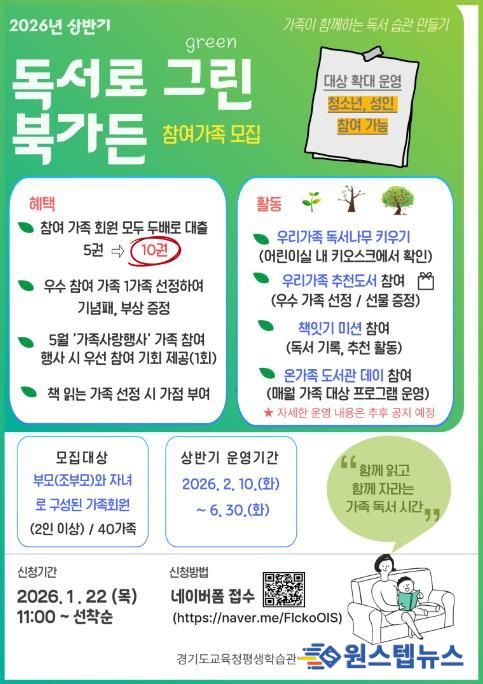 류영신 경기도교육청평생학습관장은 “이번 프로그램을 통해 가정 내 독서 문화가 자연스럽게 확산되고 책을 중심으로 한 소통과 활동을 통해 가족 간 유대감이 한층 강화되기를 기대한다”고 말했다.