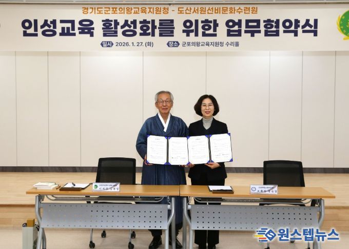 원스텝뉴스 이병희 기자 | 경기도군포의왕교육지원청은 1월 27일, 도산서원선비문화수련원과 학생들의 바른 인성 함양과 사회정서 역량 강화를 위한 업무협약(MOU)을 체결했다.