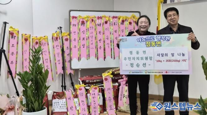 이번에 기부된 쌀은 정순선 신임 주민자치위원장이 취임을 축하받으며 화환 대신 받은 백미로, 축하의 마음을 개인에 머무르지 않고 지역사회와 함께 나누고자 하는 뜻에서 기탁하게 됐다.