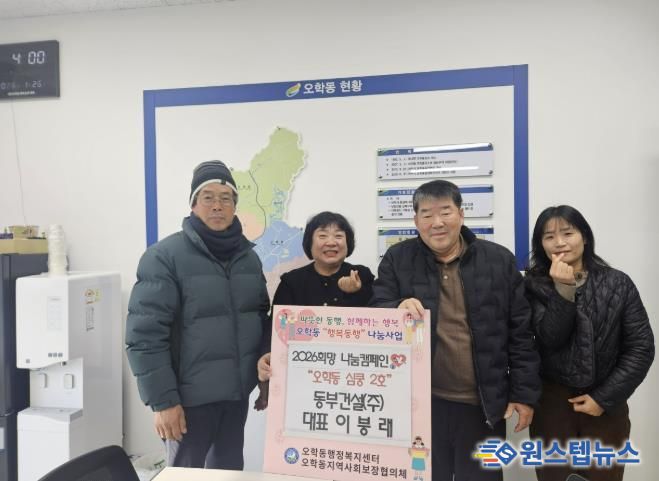 김병선 오학동장은 “어려운 경제 여건 속에서도 이웃을 위한 따뜻한 나눔을 지속적으로 실천해 주신 동부건설(주)에 깊이 감사드린다”고 말했다.