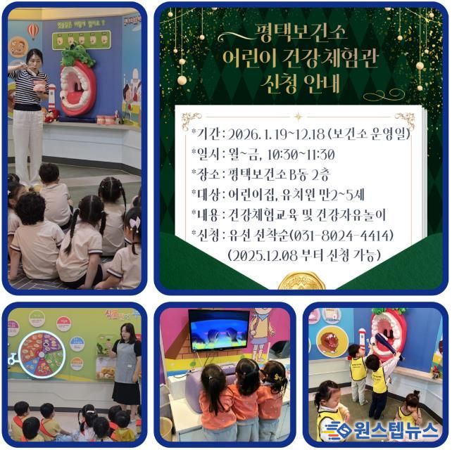 평택보건소 어린이 건강체험관은 지난 2016년부터 운영을 시작했으며, 어린이 눈높이에 맞춘 다양한 시각 자료와 교구를 활용해 건강 지식을 놀이처럼 쉽고 재미있게 배울 수 있도록 구성된 통합 체험형 교육 공간이다.