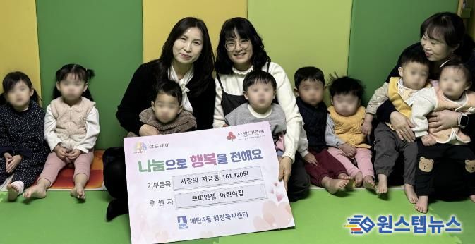 오미숙 매탄4동장은 “해마다 ‘사랑의 저금통’을 통해 따뜻한 마음을 전해주시는 쁘띠엔젤 어린이집에 감사드린다”며 “아이들의 소중한 정성이 어려운 이웃들에게 잘 전달될 수 있도록 세심하게 살피겠다”고 답했다.