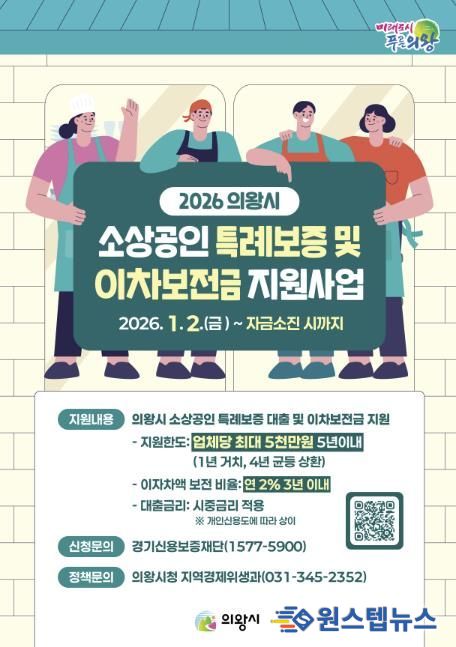 원스텝뉴스 이병희 기자 | 의왕시가 관내 소상공인의 경영난을 완화를 위해 ‘2026년 소상공인 특례보증 및 이차보전금 지원사업’을 추진하고 있다.