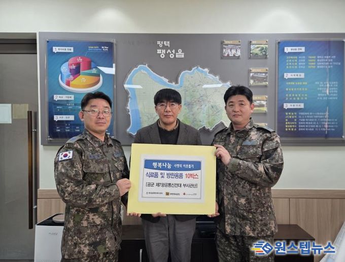 원스텝뉴스 이병희 기자 | 공군 제7항공통신전대 부사관단은 지난 28일 지역 내 어려운 이웃을 돕기 위해 식료품과 방한용품 10박스 및 상품권(100만 원)을 평택시 팽성읍 행정복지센터에 전달하며 따뜻한 나눔을 실천했다.
