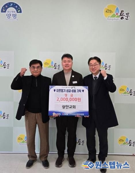 원스텝뉴스 이병희 기자 | 양평군 용문면은 광탄교회가 지난 28일, 지역 내 어려운 이웃을 돕기 위해 이웃돕기 성금 200만 원을 기탁했다고 밝혔다.