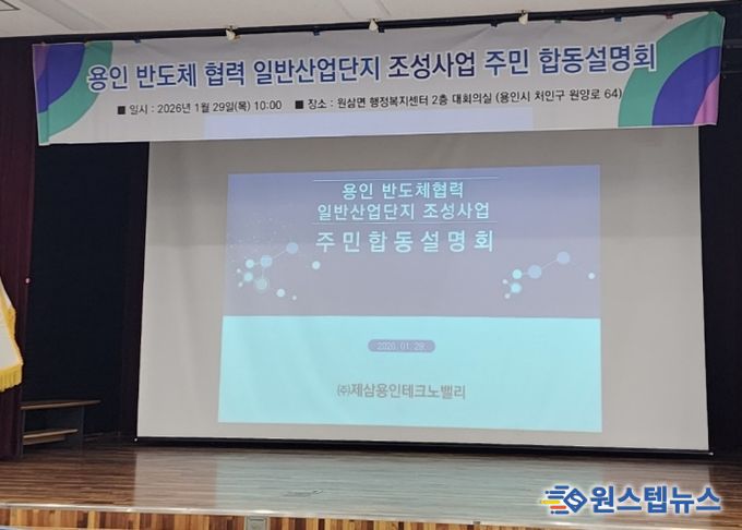 원스텝뉴스 이병희 기자 | 용인도시공사가 지분 참여한 ㈜제삼용인테크노밸리는 29일 처인구 원삼면 행정복지센터 대회의실에서 ‘용인 반도체협력 일반산업단지’ 조성을 위한 합동설명회를 개최했다고 밝혔다.