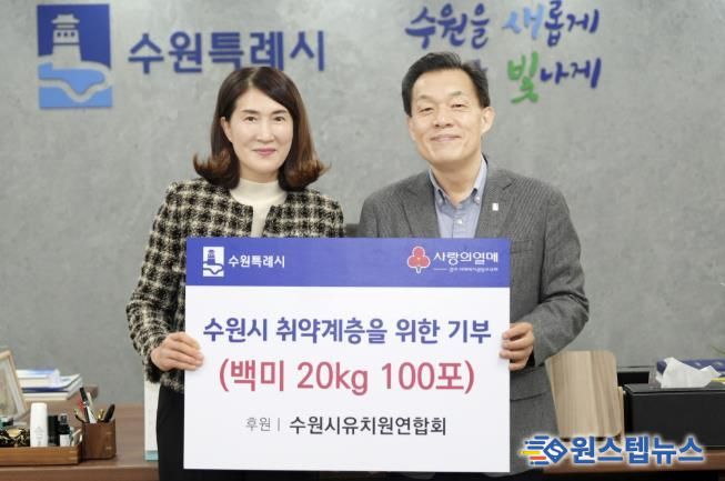 원스텝뉴스 이병희 기자 | 수원시유치원연합회가 “도움이 필요한 취약계층 이웃에 전달해 달라”며 수원특례시에 백미(20kg) 100포를 기부했다.