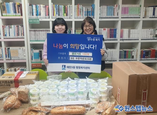원스텝뉴스 이병희 기자 | 영통구 매탄3동은 지난 29일, 매탄동 소재 SQ푸른작은도서관에서 지역 아동들의 건강한 성장을 응원하기 위해 콩요거트 144개를 기부했다고 밝혔다.