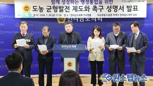 원스텝뉴스 이병희 기자 | 전라남도의회 도농복합시 농어촌 지역구 도의원들이 전남·광주 행정통합과 관련해, 도농 균형발전을 제도적으로 보장할 것을 촉구하고 나섰다.