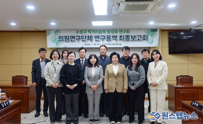 원스텝뉴스 이병희 기자 | 수성구의회 의원연구단체인 ‘수성구 먹거리골목 활성화 연구회’는 지난 28일 의회 2층 회의실에서 '수성구 먹거리골목 활성화 모델 마련'을 주제로 한 연구용역 최종보고회를 개최했다.