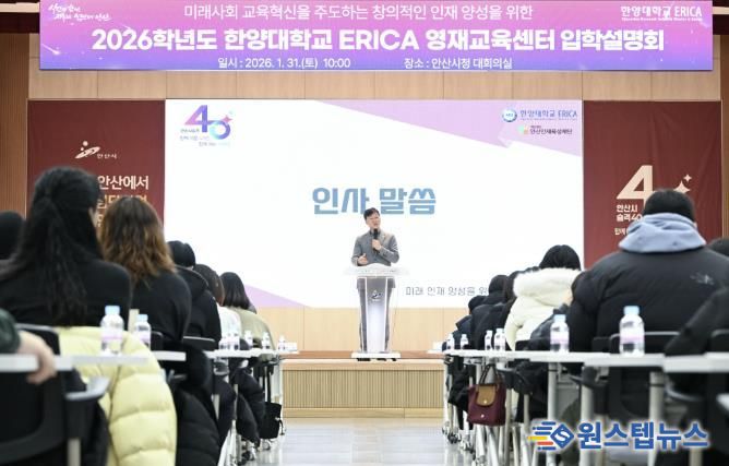 원스텝뉴스 천규영 기자 | 안산시는 지난달 31일 안산시청 대회의실에서 2026학년도 한양대학교 ERICA 영재교육센터 입학설명회를 개최했다고 2일 밝혔다.