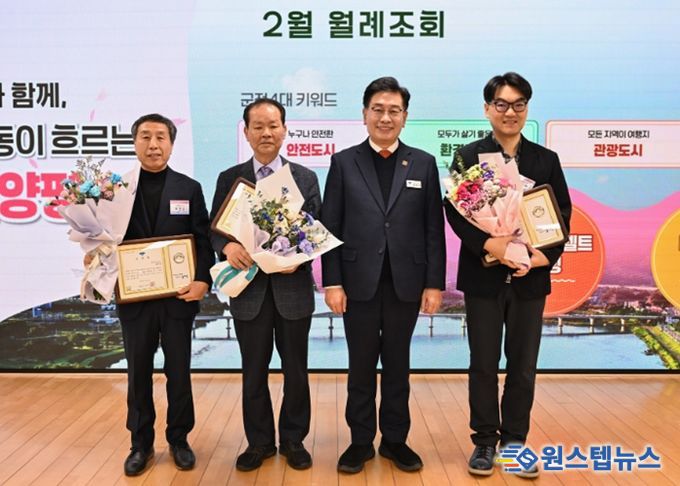 원스텝뉴스 이병희 기자 | 양평군은 2일 군청 대회의실에서 열린 2월 중 월례조회에서 일상 속 위급한 상황에서 이웃의 생명과 안전을 지킨 선행 군민 3명에게 표창을 수여했다.