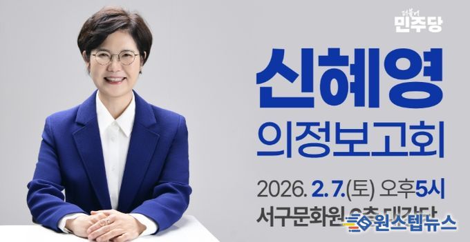 원스텝뉴스 이병희 기자 | 대전 서구의회 신혜영 의원(더불어민주당, 둔산1·2·3동)은 오는 2월 7일 오후5시 서구문화원 6층 대강당에서 ‘시민주권시대, 서구’ 의정보고회를 개최한다.