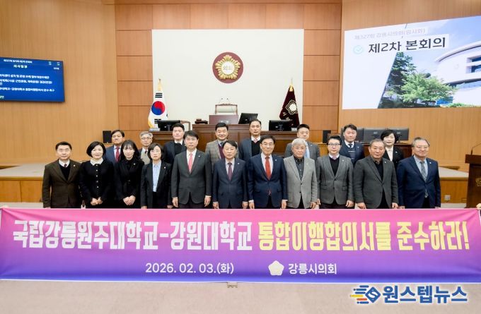 원스텝뉴스 이병희 기자 | 강릉시의회는 3일 제327회 강릉시의회(임시회) 제2차 본회의에서 조대영 의원의 대표발의로 ‘국립강릉원주대학교-강원대학교 통합이행합의서 준수 촉구 성명서’를 발의했다.