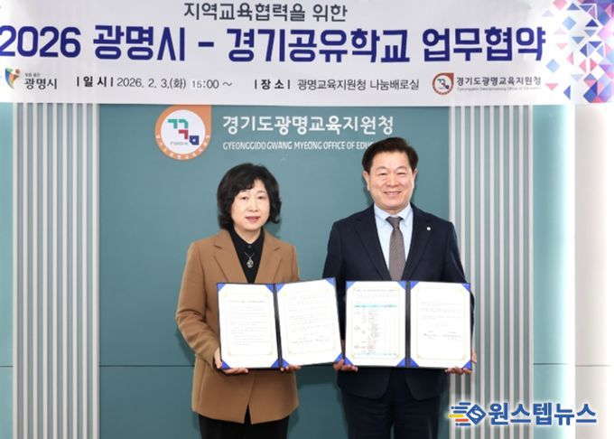 시는 3일 광명교육지원청에서 경기도교육청의 권한을 위임받은 광명교육지원청과 해오름 공유학교(경기공유학교) 업무협약 및 세부사업 부속합의를 체결했다.