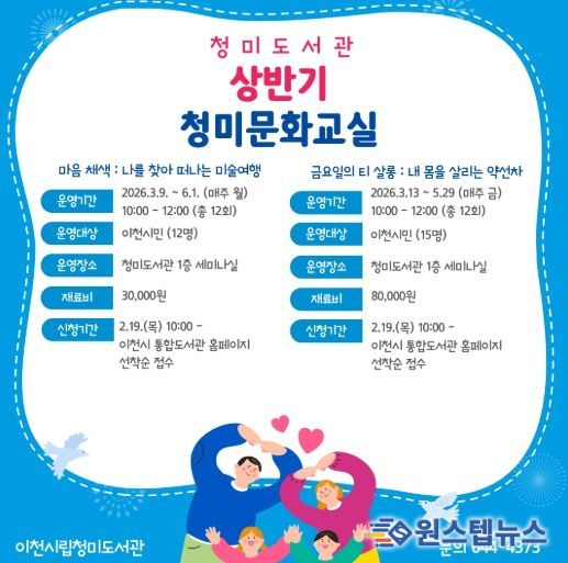 수강생 모집은 2월 19일 오전 10시부터 이천시통합도서관 누리집을 통해 선착순으로 진행된다.