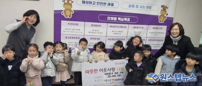 이번 성금은 아이캔어린이집 원아들이 나눔의 의미를 배우고 이웃사랑을 실천하고자 자발적으로 참여해 마련한 것으로, 아이들의 고사리 같은 손길이 더해져 의미를 더했다.