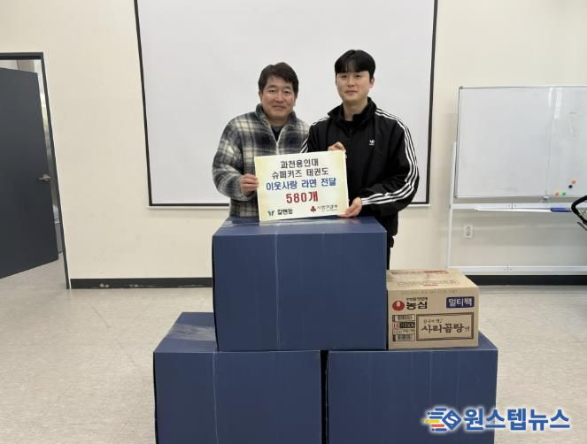 이번 기부는 ‘과천용인대슈퍼키즈 태권도장’이 3년째 이어오고 있는 나눔 활동으로, 원생들이 자발적으로 참여해 마련됐다. 기부된 라면 580개는 지역 내 취약계층에 전달될 예정이다.