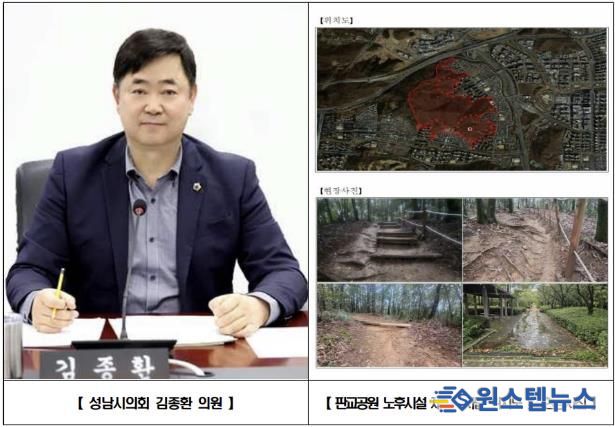원스텝뉴스 이병희 기자 | 성남시의회 국민의힘 김종환 의원(판교·백현·운중·대장동, 예산결산특별위원장)은 분당구 판교동 판교공원 일원 노후 산책로와 바닥포장 등을 정비하는 재정비공사가 본격 추진됨을 밝혔다.